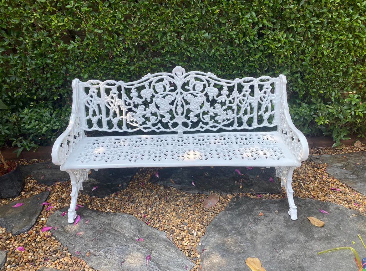 A welcoming garden bench, perfect for sharing conversations in hotels, cafés, or home gardens.