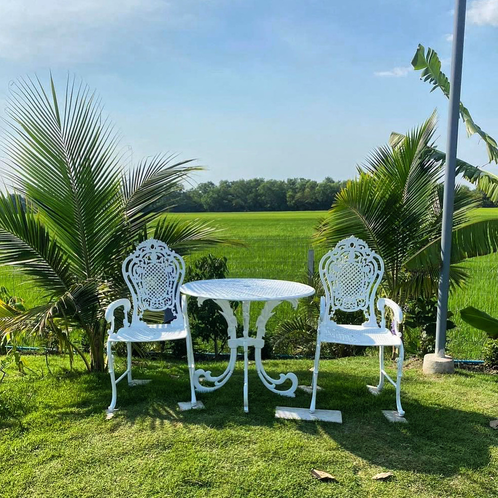 Real users affirm the timeless elegance of our alloy outdoor set  exquisitely crafted, sunproof, rainproof, and 100% rust-free. A luxurious choice made once, cherished forever